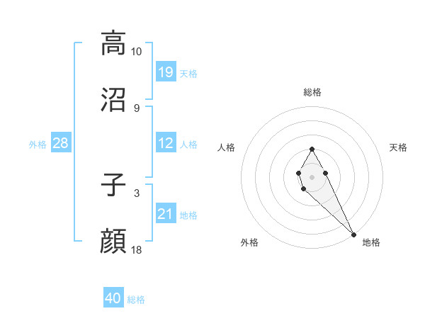 高沼 子顔さんを姓名の画数から五運を鑑定