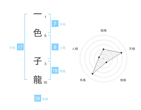 一色 子龍さんの総格は26画の2点!