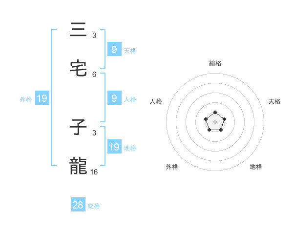 三宅 子龍さんの外格は19画の1点!