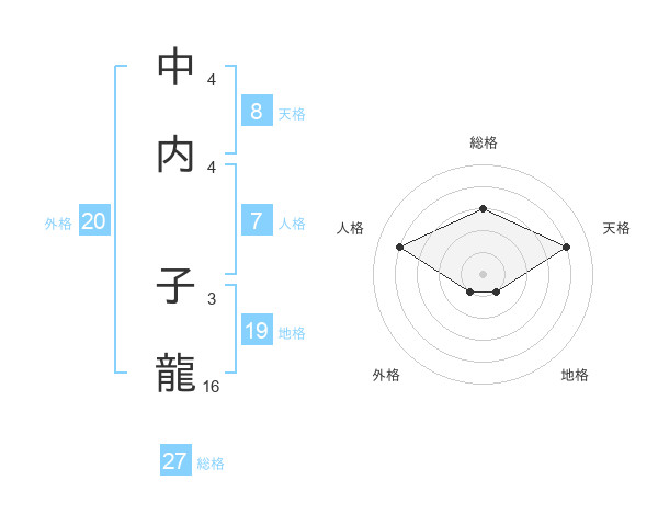 中内 子龍さんの天格は8画の4点!
