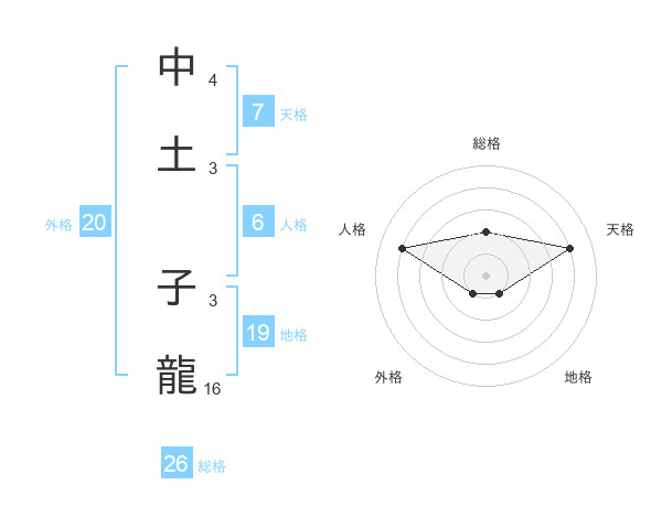 中土 子龍さんの総格は26画の2点!
