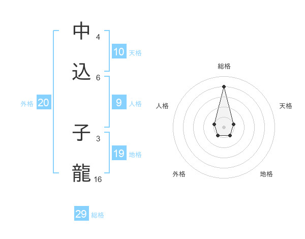 中込 子龍さんの総格は29画の4点!