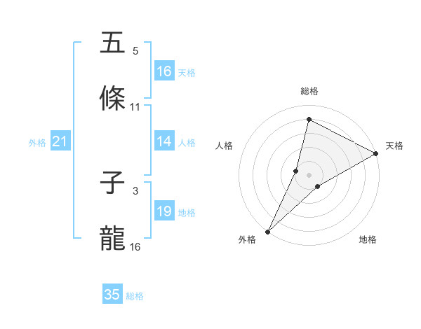 五條 子龍さんの天格は16画の5点!