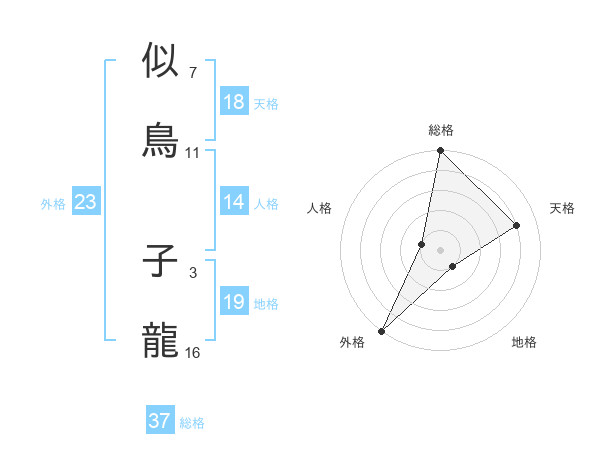 似鳥 子龍さんの総格は37画の5点!