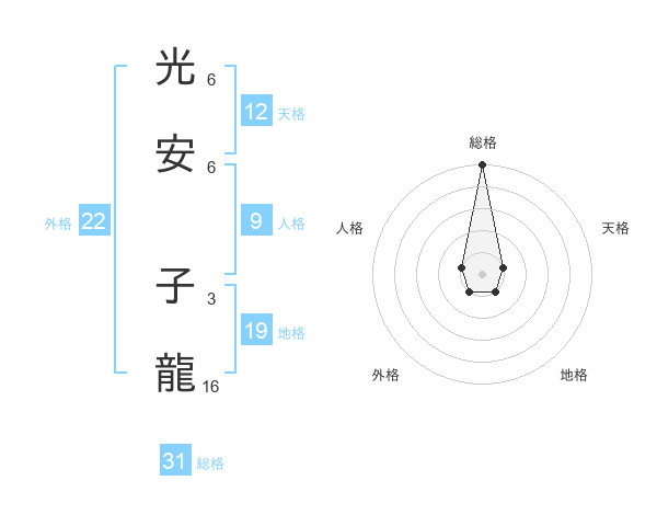 光安 子龍さんの総格は31画の5点!