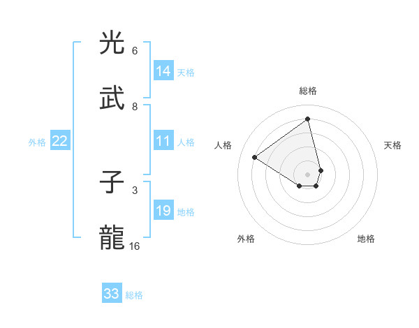 光武 子龍さんの総格は33画の4点!