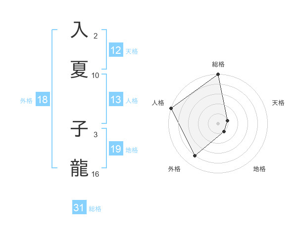 入夏 子龍さんを姓名の画数から五運を鑑定