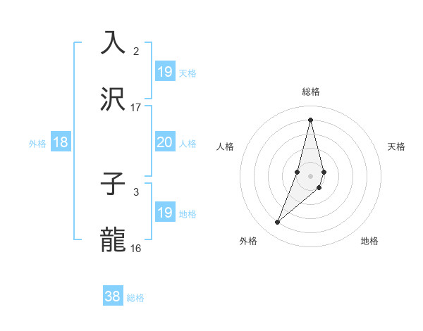 入沢 子龍さんの総格は38画の4点!
