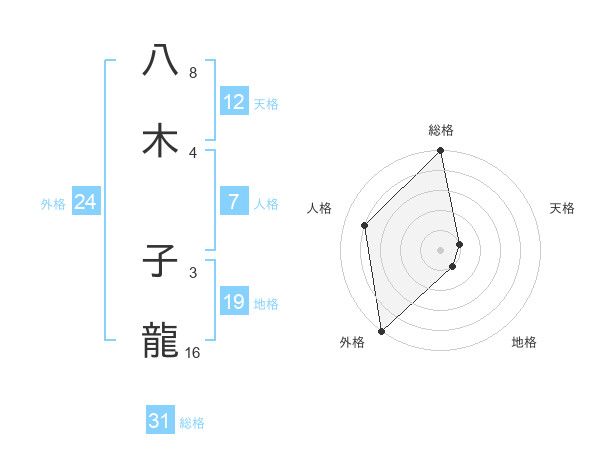 八木 子龍さんの総格は31画の5点!
