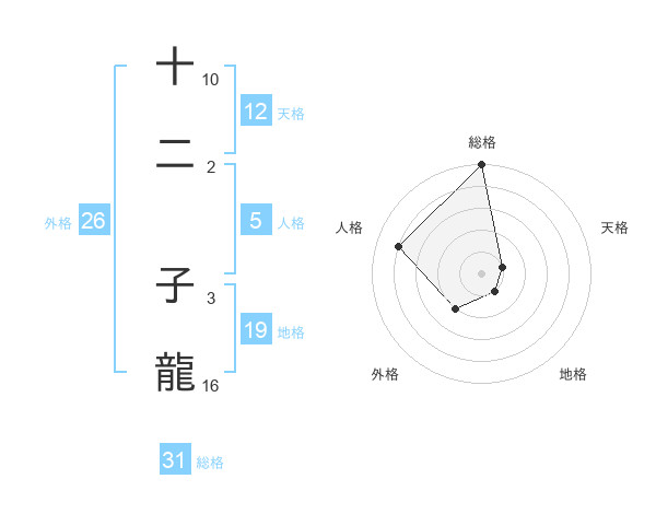 十二 子龍さんの総格は31画の5点!