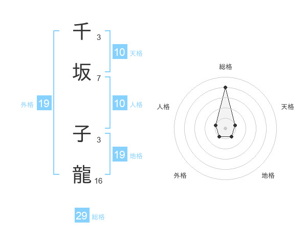 千坂 子龍さんを姓名の画数から五運を鑑定