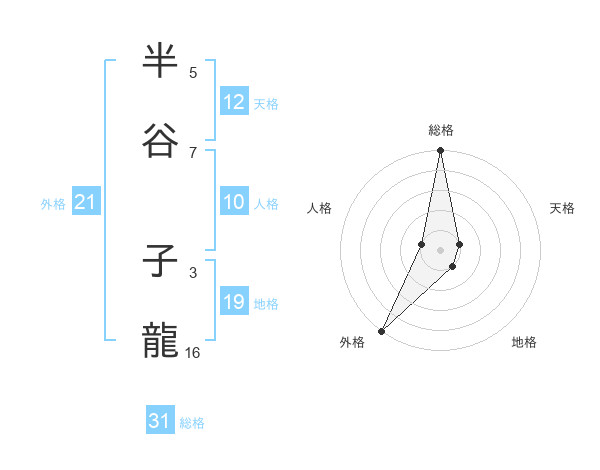 半谷 子龍さんを姓名の画数から五運を鑑定