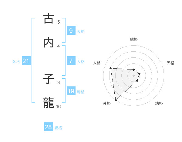 古内 子龍さんの外格は21画の5点!
