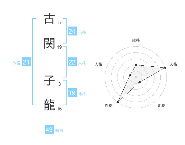 古関 子龍さんの外格は21画の5点!