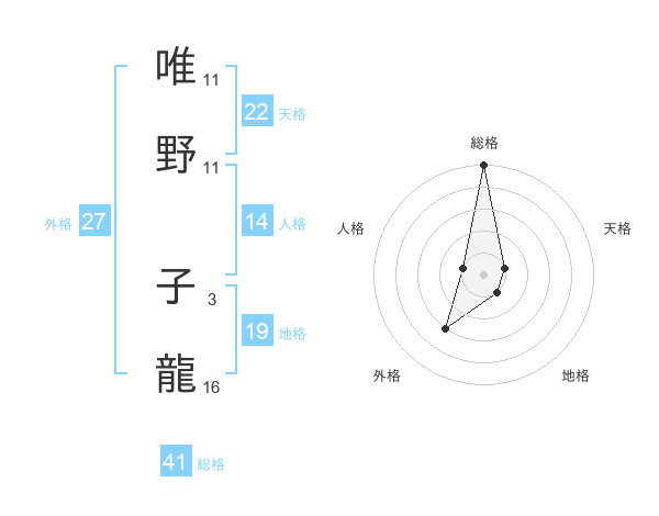 唯野 子龍さんを姓名の画数から五運を鑑定