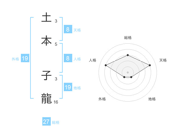 土本 子龍さんの総格は27画の3点!