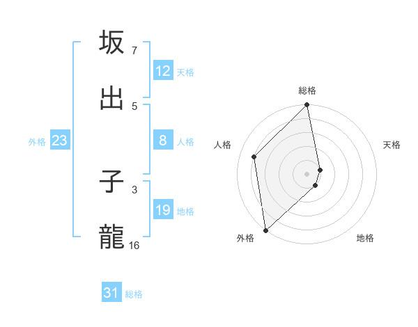 坂出 子龍さんの総格は31画の5点!