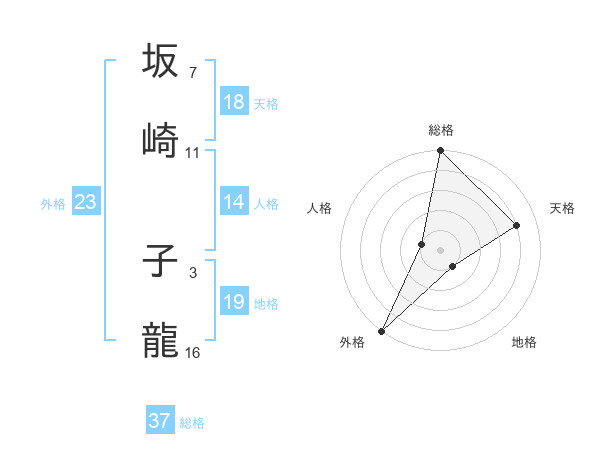 坂崎 子龍さんの外格は23画の5点!