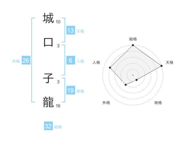 城口 子龍さんの天格は13画の5点!