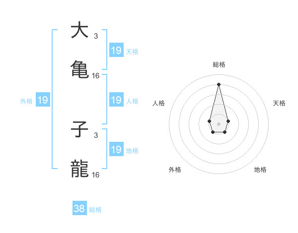 大亀 子龍さんの総格は38画の4点!