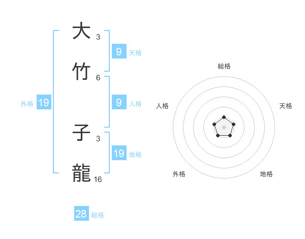 大竹 子龍さんを姓名の画数から五運を鑑定