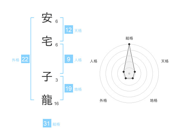 安宅 子龍さんの総格は31画の5点!