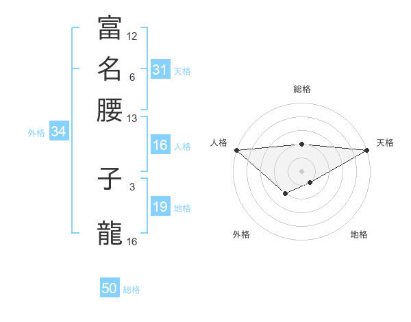 富名腰 子龍さんを姓名の画数から五運を鑑定