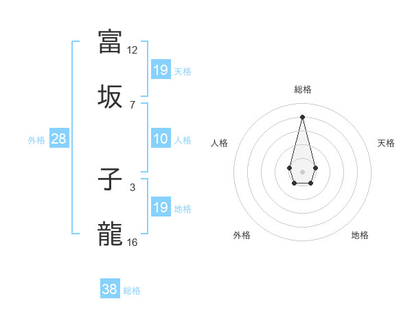 富坂 子龍さんの総格は38画の4点!