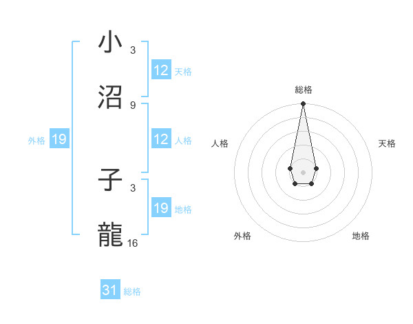 小沼 子龍さんを姓名の画数から五運を鑑定