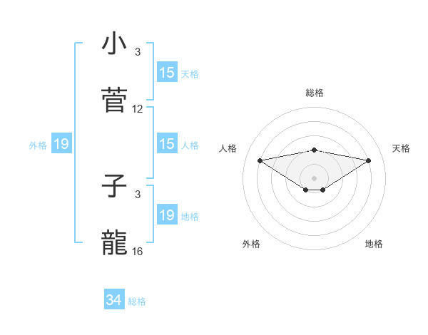 小菅 子龍さんを姓名の画数から五運を鑑定