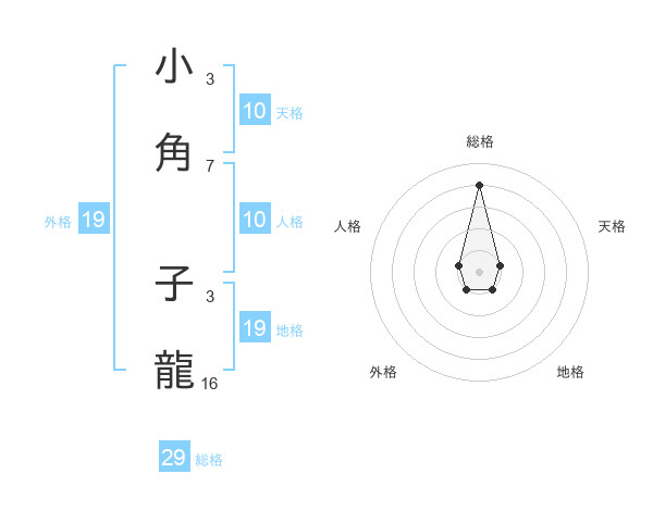 小角 子龍さんの総格は29画の4点!