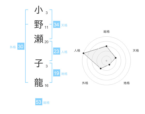 小野瀬 子龍さんを姓名の画数から五運を鑑定