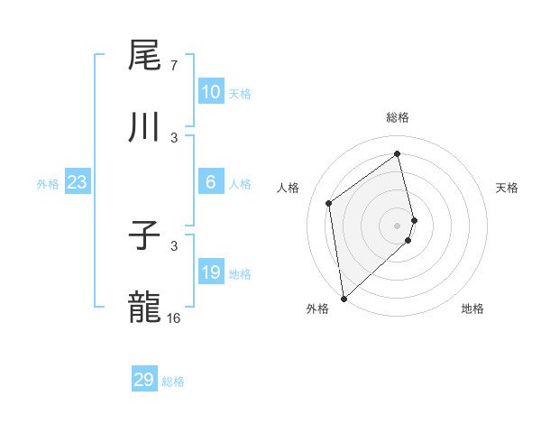 尾川 子龍さんを姓名の画数から五運を鑑定