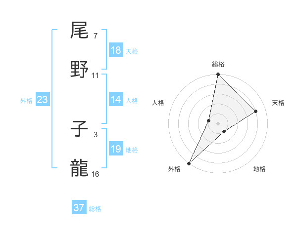 尾野 子龍さんの総格は37画の5点!