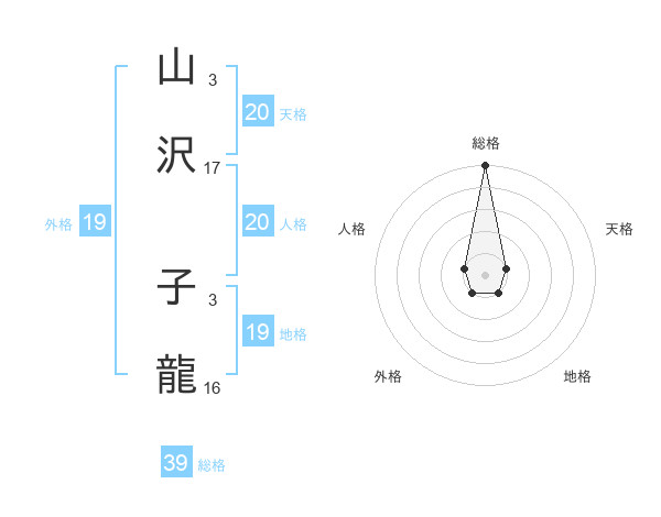 山沢 子龍さんを姓名の画数から五運を鑑定