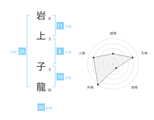 岩上 子龍さんを姓名の画数から五運を鑑定