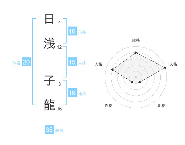 日浅 子龍さんを姓名の画数から五運を鑑定