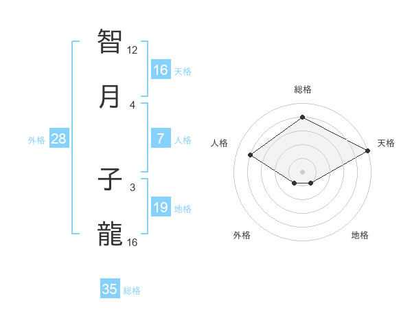 智月 子龍さんの天格は16画の5点!