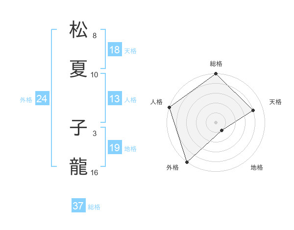 松夏 子龍さんを姓名の画数から五運を鑑定