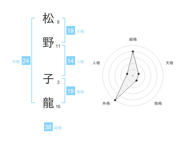 松野 子龍さんの総格は38画の4点!