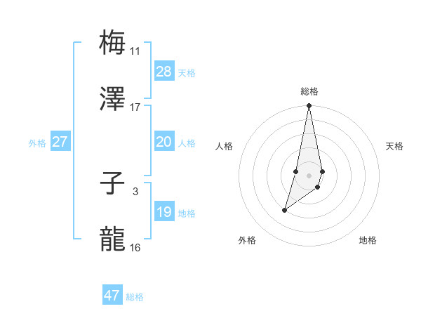 梅澤 子龍さんを姓名の画数から五運を鑑定