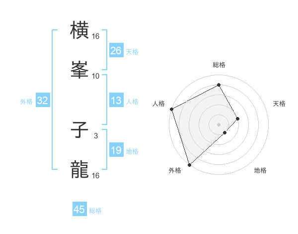 横峯 子龍さんを姓名の画数から五運を鑑定