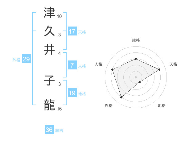 津久井 子龍さんの天格は17画の4点!