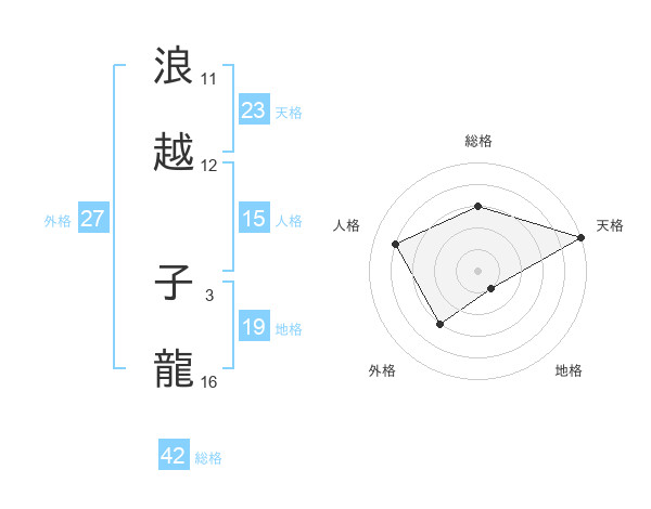 浪越 子龍さんの総格は42画の3点!