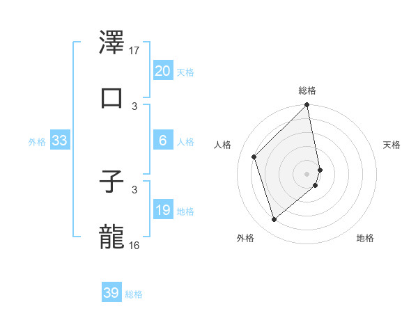 澤口 子龍さんの総格は39画の5点!