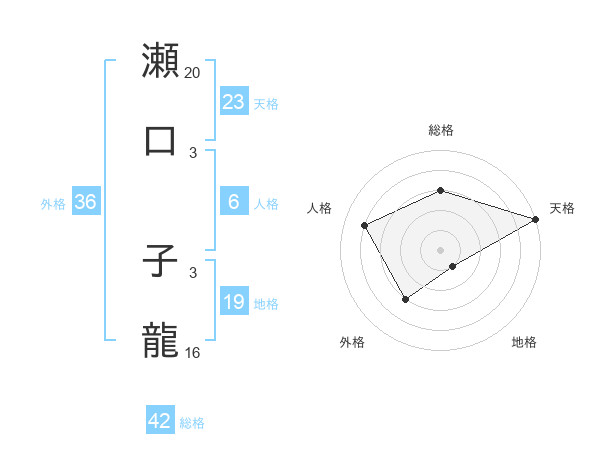 瀬口 子龍さんの天格は23画の5点!