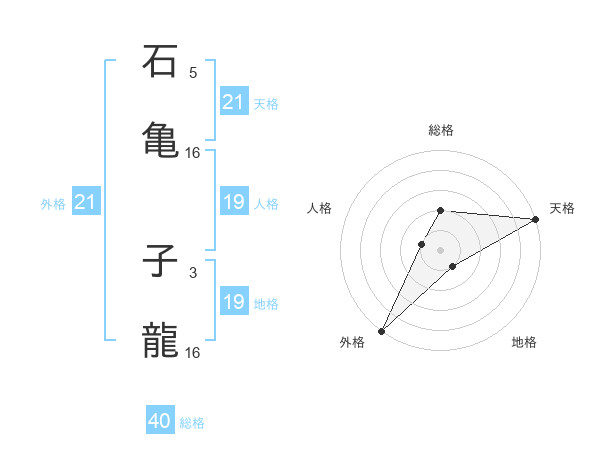 石亀 子龍さんの天格は21画の5点!