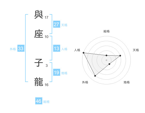 與座 子龍さんの総格は46画の1点!