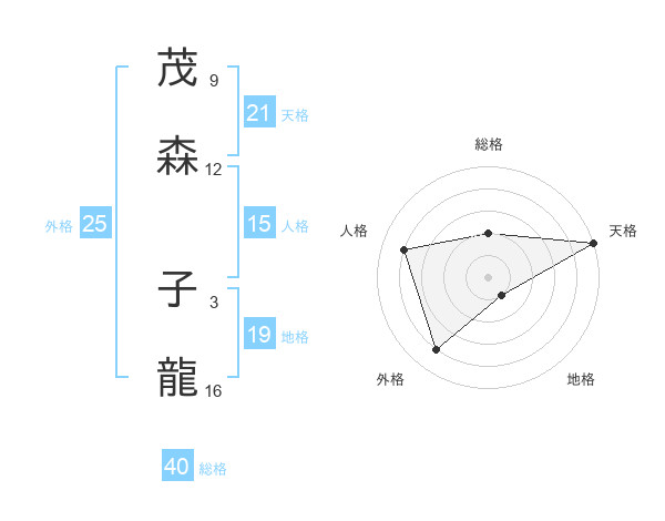 茂森 子龍さんを姓名の画数から五運を鑑定