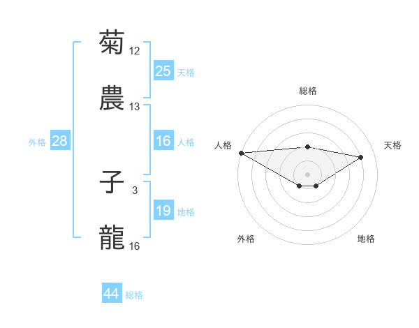 菊農 子龍さんの総格は44画の2点!